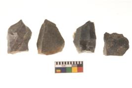 | Description / विवरण | There are n 4 flakes tool; there are flakes tool with prominent flaking marks. It made up of a large flakes with sides trimmed. |