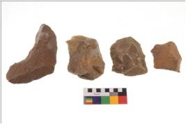 | Description / विवरण | There are n 4 flakes; there are multidirectional irregular scar pattern on them; made of short flakes and all four have blunted edges. |