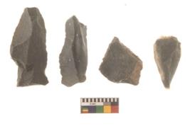 | Description / विवरण | There are n 4 flakes tool; there are flakes tool with prominent flaking marks. It made up of a large flakes with sides trimmed. |