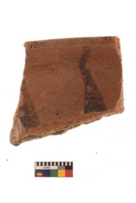 | Description / विवरण | Specimen of black on red ware with black decorative Parallel triangles geometric painting. |