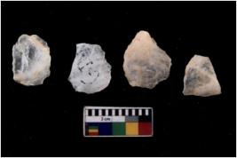 | Description / विवरण | Specimen of flake tools with prominent flaking marks. They are made up of a short flakes with sides trimmed. |