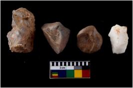 | Description / विवरण | There are 04 cores; three chalcedony and one quartz materials. showing impressions of removal of blades. |