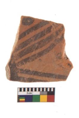 | Description / विवरण | Specimen of Potsherd with black decorative linear painting . |