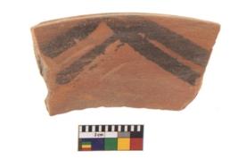 | Description / विवरण | Specimen of Potsherd with black decorative linear painting . |