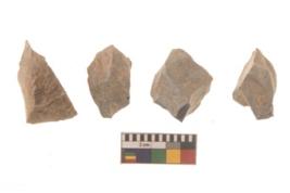 | Description / विवरण | There are n 4 flakes tool; there are flakes tool with prominent flaking marks. It made up of a large flakes with sides trimmed. |