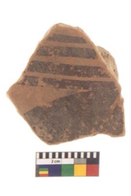 | Description / विवरण | Specimen of potsherd with black decorative geometric Net Pattern painting . |