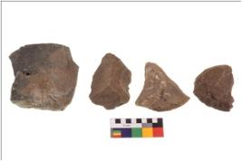 | Description / विवरण | There are n 4 flakes tool; there are triangular flake tool having flat thick body and deep long flake scar is seen on the upper side. It has flat thick bottom and pointed functional top. |
