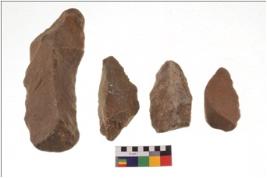 | Description / विवरण | There are n 4 flakes tool; there are triangular flake tool having flat thick body and deep long flake scar is seen on the upper side. It has flat thick bottom and pointed functional top. |