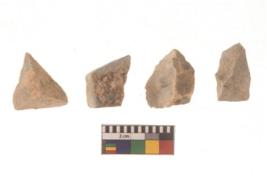 | Description / विवरण | There are n 4 flakes tool; there are large flakes with sides trimmed, Marks of secondary flaking are present on the both the faces. The dorsal is relatively flat. |
