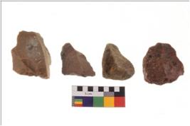| Description / विवरण | There are n 4 flakes; there are multidirectional irregular scar pattern on them; made of short flakes and all four have blunted edges. |