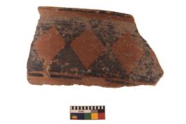 | Description / विवरण | Specimen of red on red ware with decorative Joined diamond shaped design geometric painting. |