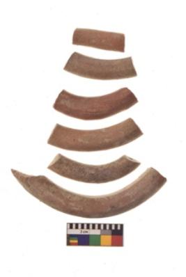 | Description / विवरण | There are n-6 broken fragments of plain terracotta bangles. They are reddish in colour with circular cross section. |