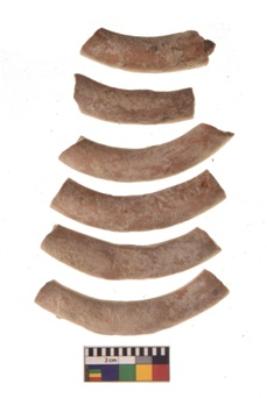 | Description / विवरण | There are n-6 broken fragments of plain terracotta bangles. They are reddish in colour with circular cross section. |