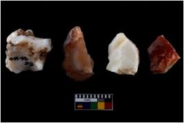 | Description / विवरण | There are n 4 utilized flake cores. There are multidirectional irregular scar pattern on both dorsal and ventral face of the flake cores. One has sharp edges and three have blunted edges. |