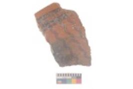 | Description / विवरण | Specimen of black on red ware with black decorative Lattice and wavy design geometric painting. |
