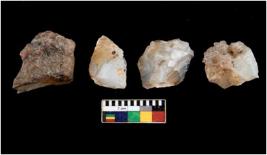 | Description / विवरण | There are n-4 cores. Irregular in scar pattern with smooth surface. Edges of some are round and of some are pointed. Two are chalcedony and two are chert. |