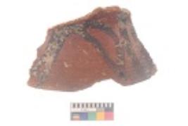 | Description / विवरण | Specimen of black on red ware with black decorative Broad double axe like design geometric painting. |