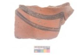 | Description / विवरण | Specimen of black on red ware with black decorative Lattice leaf geometric painting. |