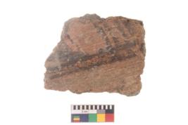 | Description / विवरण | Specimen of black on red ware with black decorative Vertical lines intersecting horizontal lines geometric painting. |
