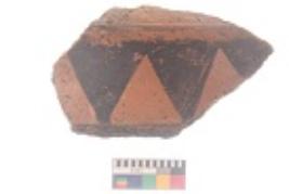 | Description / विवरण | Specimen of black on red ware with black decorative Broad diamond lattice geometric painting. |