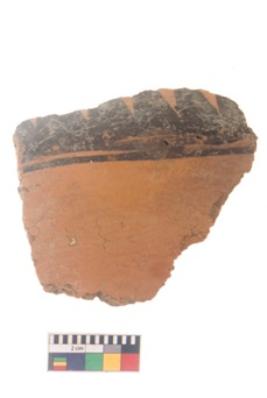 | Description / विवरण | Specimen of black on red ware with black decorative Group of vertical triangles geometric painting. |