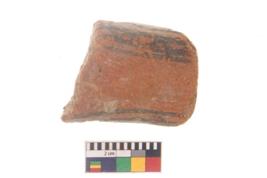 | Description / विवरण | Specimen of black on red ware with black decorative Joint curved lines geometric painting. |