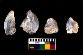 | Description / विवरण | There are n-4 of utilized flake cores. There are multidirectional irregular dominant scar pattern on both dorsal and ventral face of the cores. |