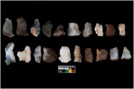 | Description / विवरण | There are n 20 flakes; there are multidirectional irregular scar pattern on them; made of short flakes one is blade and few have tapering edges. |