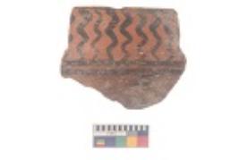 | Description / विवरण | Specimen of black on red ware with black decorative Wavy lines geometric painting. |
