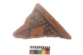 | Description / विवरण | Specimen of black on red ware with black decorative Diamond lattice design geometric painting. |