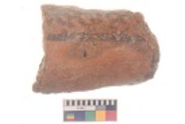 | Description / विवरण | Specimen of black on red ware with black decorative Lattice pattern geometric painting. |