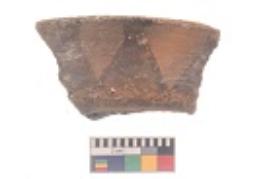 | Description / विवरण | Specimen of black on red ware with black decorative Group of elongated triangles geometric painting. |