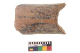 | Description / विवरण | Specimen of black on red ware with black decorative Lattice design geometric painting. |