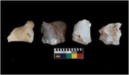 | Description / विवरण | There are n-4 cores. There are irregular scar pattern. There are round edges and blunted edges. One chalcedony and three chert |