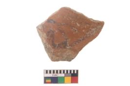 | Description / विवरण | Specimen of black on red ware with black decorative Curved lines geometric painting. |