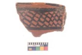 | Description / विवरण | Specimen of black on red ware with black decorative Lattice design geometric painting. |