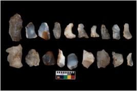 | Description / विवरण | There are n 20 flakes; there are multidirectional irregular scar pattern on them; made of short flakes, few are blades, few have pen pointed edges and few have tapering sharp edges. |