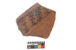 | Description / विवरण | Specimen of black on red ware with black decorative Leaf like design nature painting. |