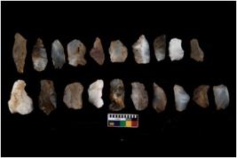 | Description / विवरण | There are n 20 flakes; there are multidirectional irregular scar pattern on them; made of short flakes, few are blades, few have pen pointed edges and few have tapering sharp edges. |