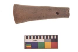 | Description / विवरण | Specimen of a Terracotta Pendant. It is made of red ware, fine fabric, well-fired. It is cylindrical in shape with tapering upwards. The base of this object is flat and the hole for suspension is provided near the top. |