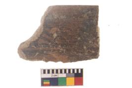 | Description / विवरण | Specimen of black on red ware with black decorative Lattice design geometric painting. |