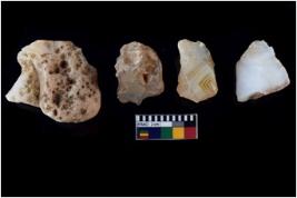 | Description / विवरण | There are n-4 of utilized flake cores. There are multidirectional irregular dominant scar pattern on both dorsal and ventral face of the cores. |