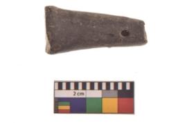 | Description / विवरण | Specimen of a Terracotta Pendant. It is made of red ware, fine fabric, well-fired. It is cylindrical in shape with tapering upwards. The base of this object is flat and the hole for suspension is provided near the top. |