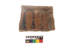 | Description / विवरण | Specimen of black on red ware with black decorative Group of elongated vertical triangles geometric painting. |