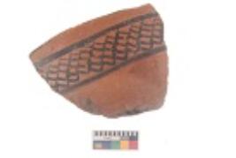 | Description / विवरण | Specimen of black on red ware with black decorative Lattice design geometric painting. |