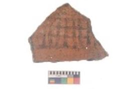 | Description / विवरण | Specimen of black on red ware with black decorative Square lattice design geometric painting. |