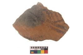 | Description / विवरण | Specimen of black on red ware with black decorative Wavy and horizontal lines geometric painting. |