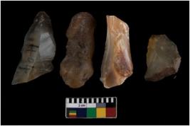 | Description / विवरण | There are n 04 objects; among them three are blade cores, one is fluted core, all are having sharp edges. Some are tapering at one end. |