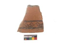 | Description / विवरण | Specimen of black on red ware with black decorative Lines intersecting eachother geometric painting. |