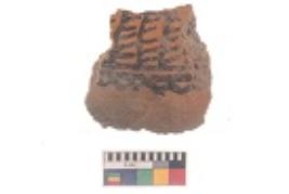 | Description / विवरण | Specimen of black on red ware with black decorative Wavy lines joint with a band of small vertical lines geometric painting. |
